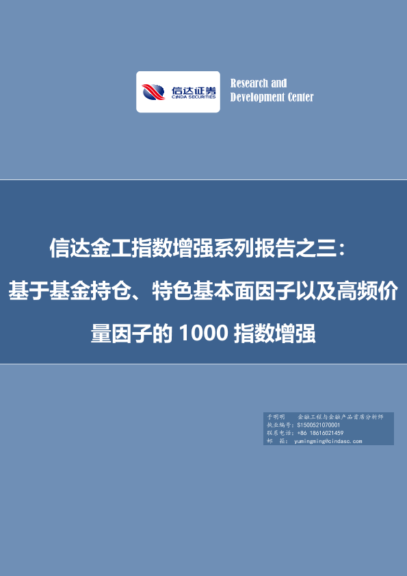 【信达证券】【20230212】信达金工指数增强系列报告之三:基于基金持仓、特色基本面因子以及高频价量因子的1000指数增强-26页