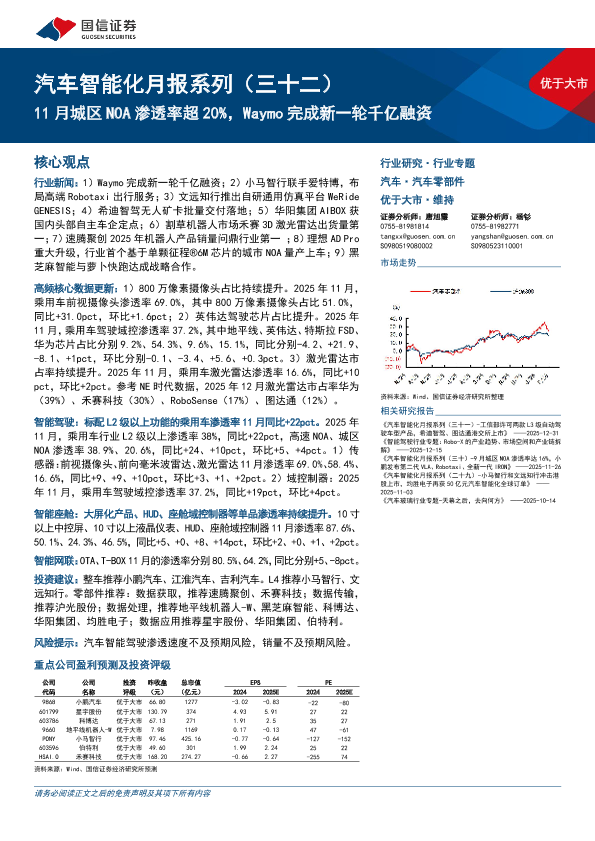 【国信证券】【202502】汽车行业智能化月报系列(三十二):11月城区NOA渗透率超20%,Waymo完成新一轮千亿融资-64页