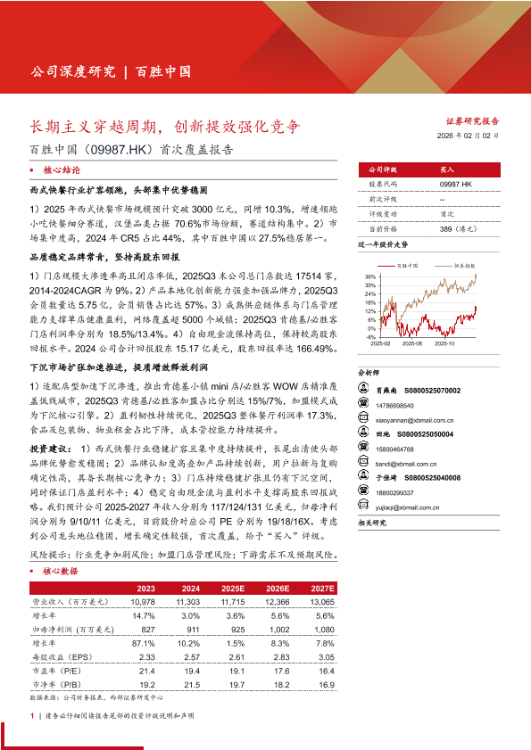 【西部证券】【202602】百胜中国(09987.HK)首次覆盖报告:长期主义穿越周期,创新提效强化竞争-28页