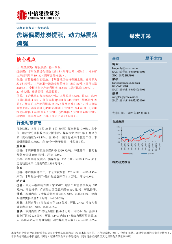 【中信建投证券】【202602】焦煤偏弱焦炭提涨,动力煤震荡偏强-27页