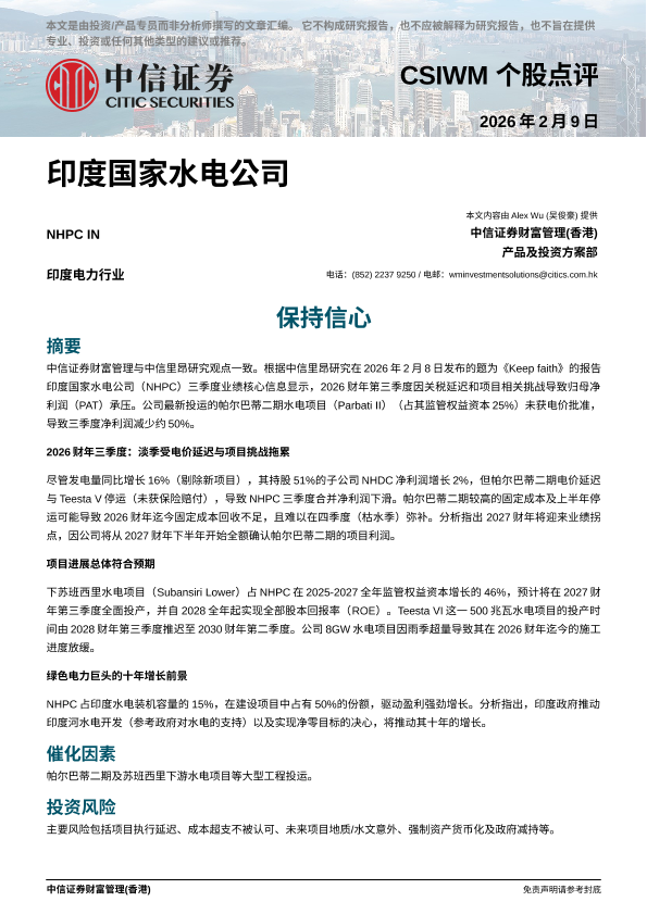 中信证券财富管理(香港) 电力热力燃气水生产 2026年 PDF 633.42 KB