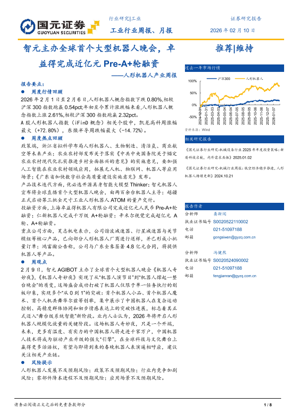 【国元证券】【202602】智元主办全球首个大型机器人晚会,卓益得完成近亿元 Pre-A+轮融资-8页