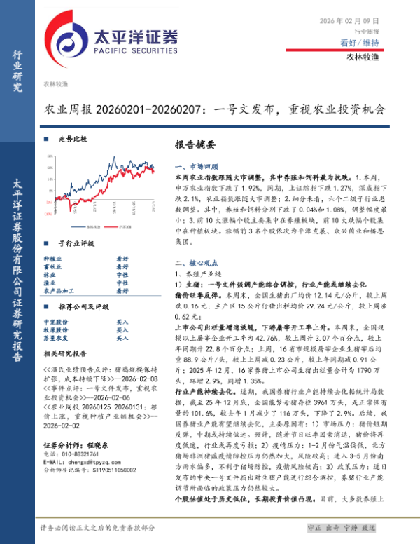 【太平洋证券】【202602】农业周报 20260201-20260207:一号文发布,重视农业投资机会-19页