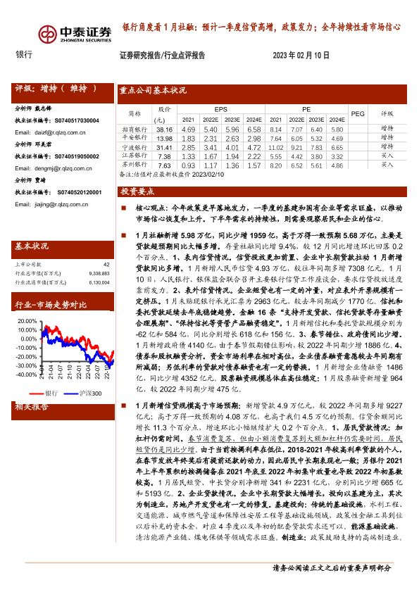 【中泰证券】【20230213】银行角度看1月社融:预计一季度信贷高增,政策发力;全年持续性看市场信心-14页
