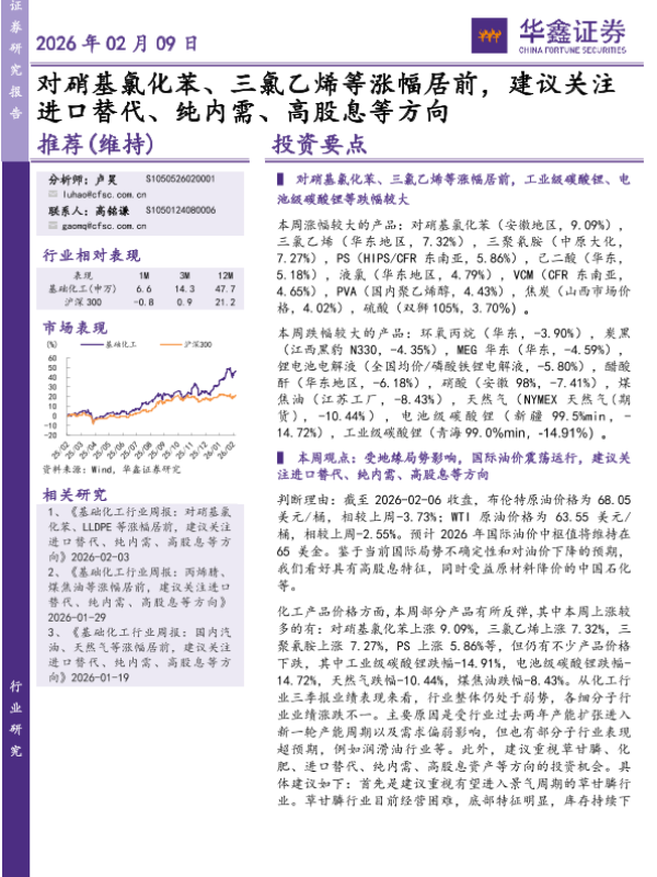 【华鑫证券】【202602】基础化工:对硝基氯化苯、三氯乙烯等涨幅居前,建议关注进口替代、纯内需、高股息等方向-33页