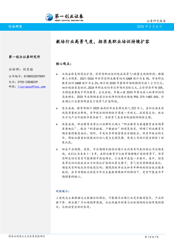 【第一创业证券】【2024】教培行业高景气度,招录类职业培训持续扩容-7页
