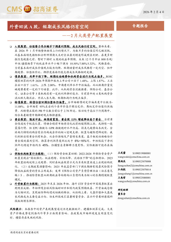 【海通证券】【202602】外资回流A股,短期成长风格仍有空间——2月大类资产配置展望-30页