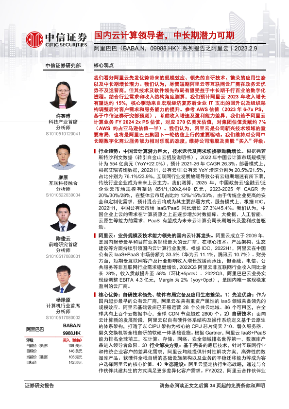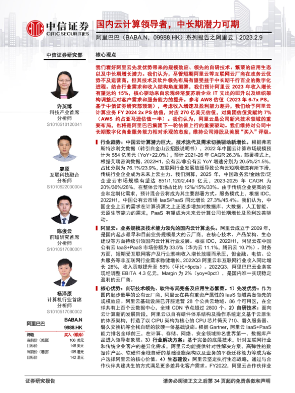 【中信证券】【20230209】阿里巴巴(09988.HK)系列报告之阿里云:国内云计算领导者,中长期潜力可期-35页