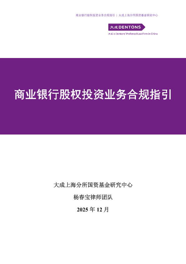 【大成上海分所国资基金研究中心】【202512】商业银行股权投资业务合规指引-167页