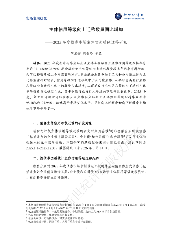 【新世纪评级】【2026】2025年度债券市场主体信用等级迁移研究-17页