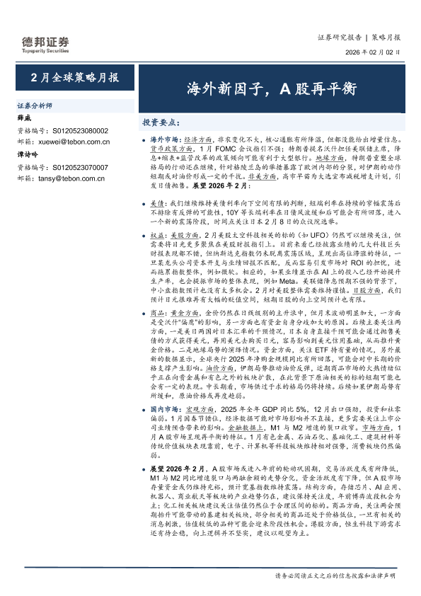 【德邦证券】【202602】2月全球策略月报:海外新因子,A股再平衡-14页