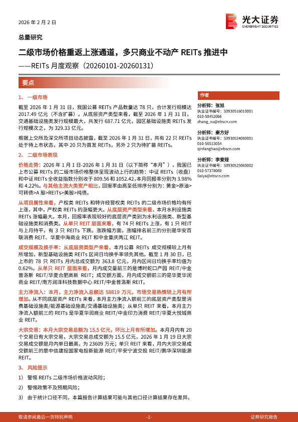 【光大证券】【202602】二级市场价格重返上涨通道,多只商业不动产 REITs推进中——REITs月度观察(20260101-20260131)-14页