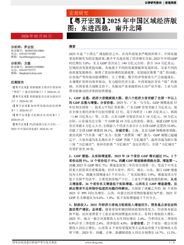 【粤开证券】【202602】2025年中国区域经济版图:东进西稳,南升北降-21页