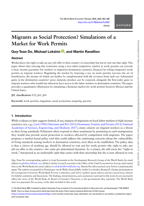 【World Bank】【2025】Migrants as Social Protection? Simulations of a Market for Work Permits-14页