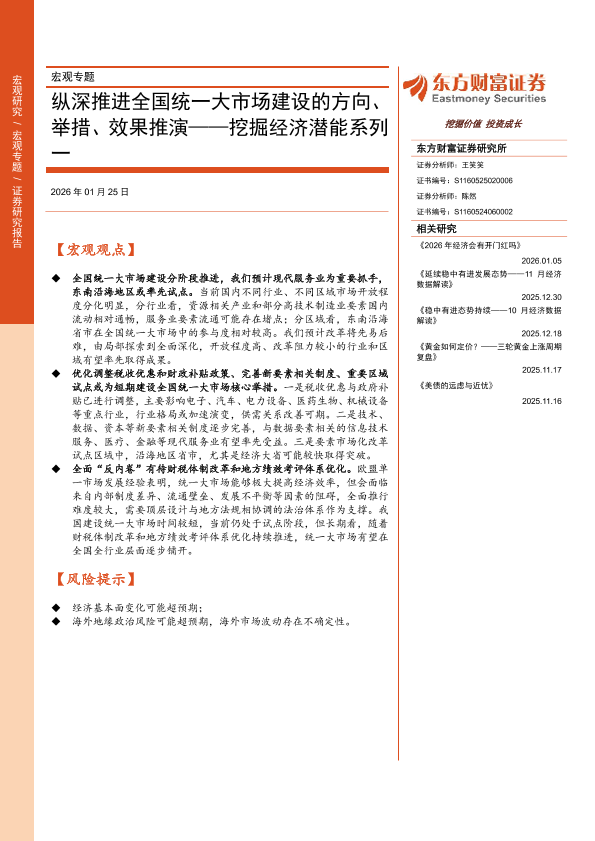 【东方财富证券】【202601】纵深推进全国统一大市场建设的方向、举措、效果推演——挖掘经济潜能系列-15页