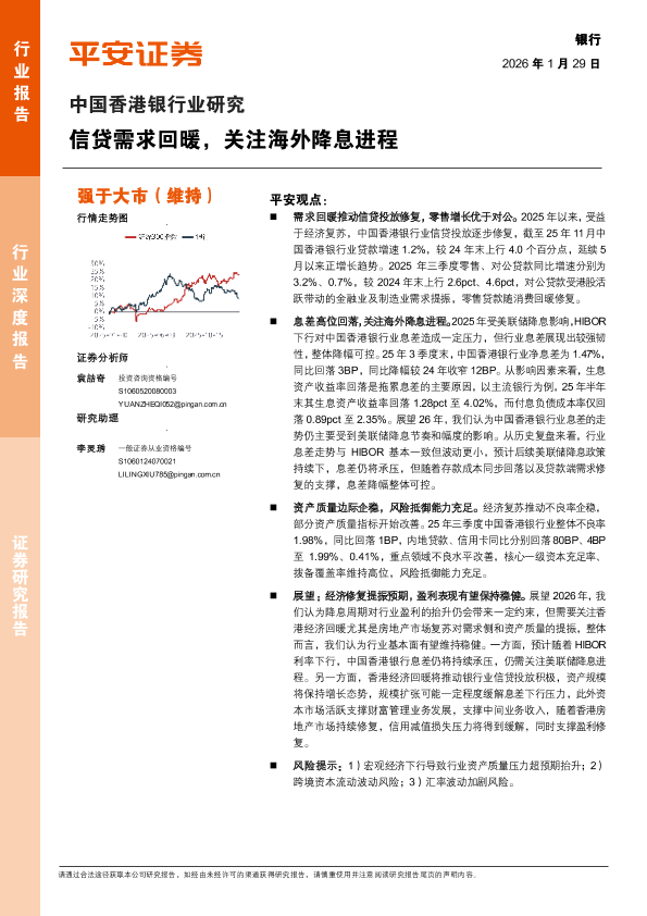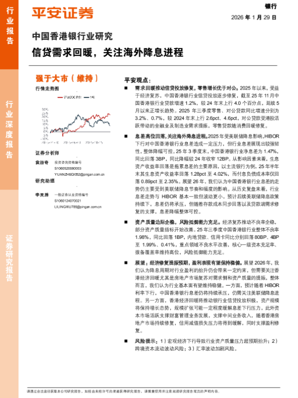 【平安证券】【2026】中国香港银行业研究:信贷需求回暖,关注海外降息进程-19页