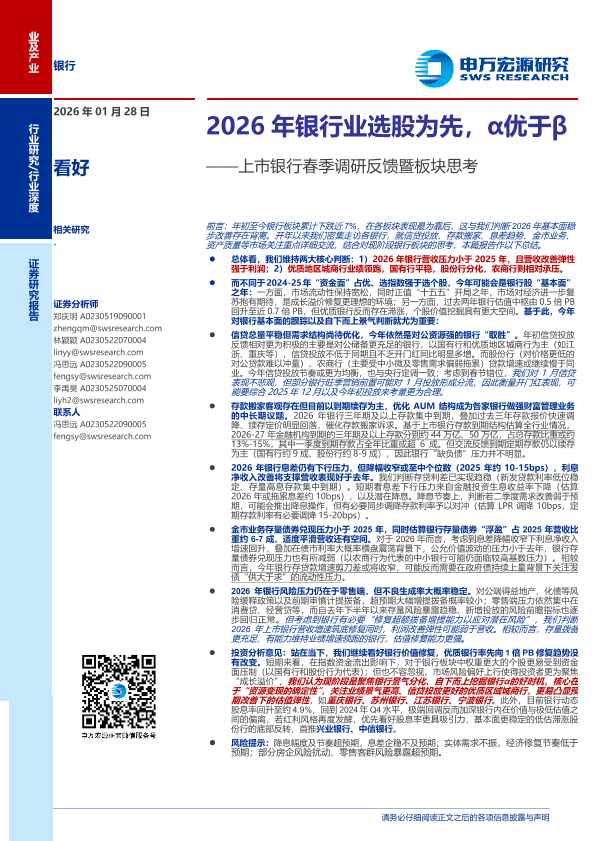 【申万宏源证券有限公司】【202602】2026年银行业选股为先,α优于β-23页