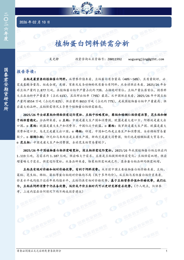 【国泰君安期货】【202602】植物蛋白饲料供需分析-21页