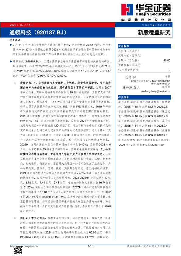 【华金证券】【202602】新股覆盖研究:通领科技-10页