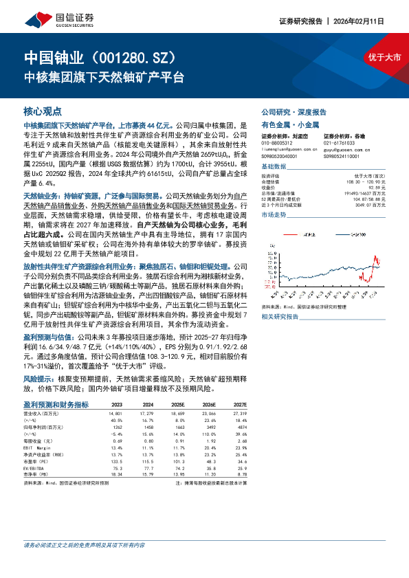【国信证券】【202602】中国铀业(001280.SZ):中核集团旗下天然铀矿产平台-30页