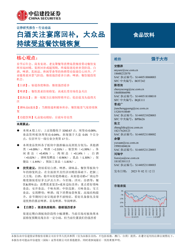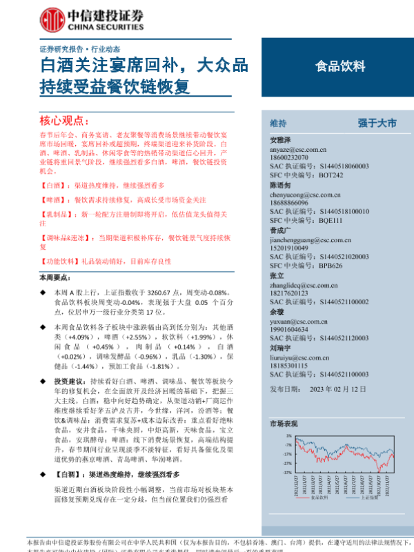【中信建投证券】【20230212】食品饮料行业:白酒关注宴席回补,大众品持续受益餐饮链恢复-27页