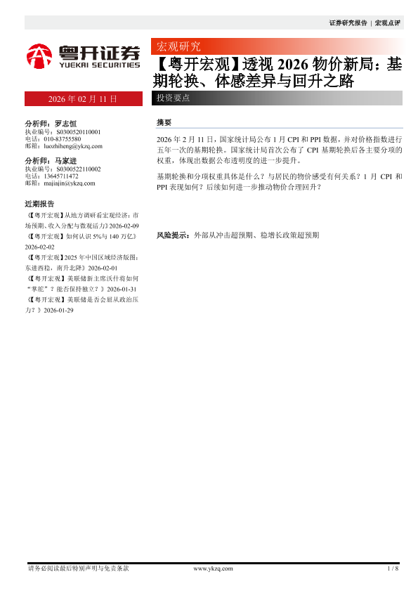 【粤开证券】【202602】【粤开宏观】透视2026物价新局:基期轮换、体感差异与回升之路-8页