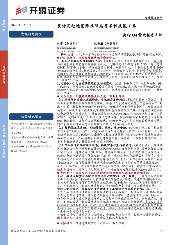 【开源证券】【202602】央行Q4货政报告点评:灵活高效运用降准降息等多种政策工具-5页