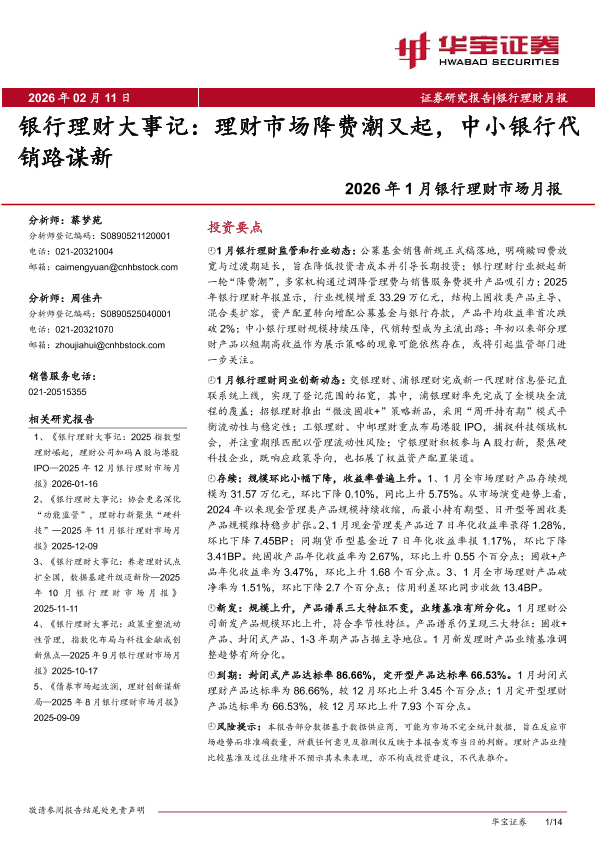 【华宝证券】【202601】2026年1月银行理财市场月报:银行理财大事记:理财市场降费潮又起,中小银行代销路谋新-14页