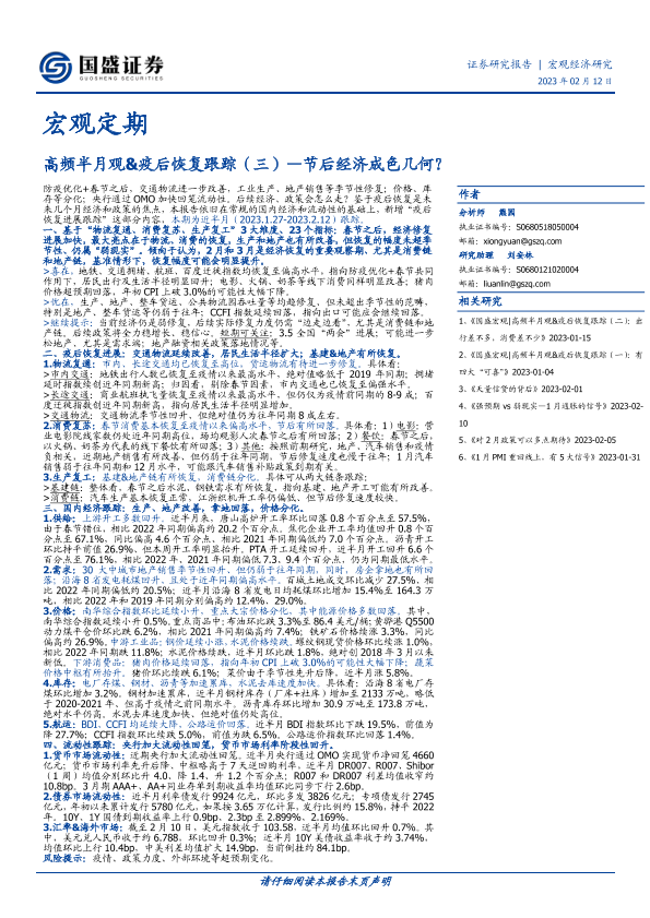 【国盛证券】【20230212】高频半月观&疫后恢复跟踪(三):节后经济成色几何?-17页