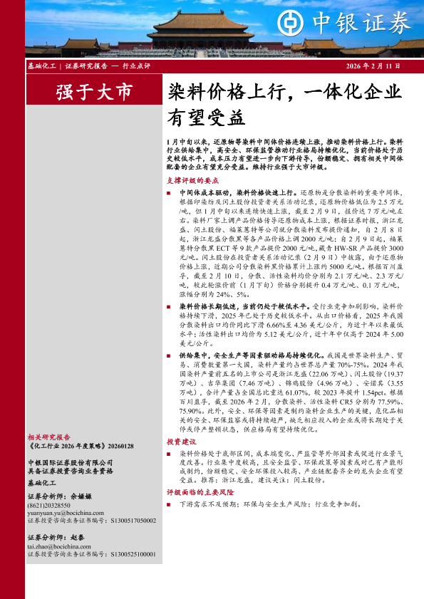 【中银证券】【202602】染料价格上行,一体化企业有望受益-3页