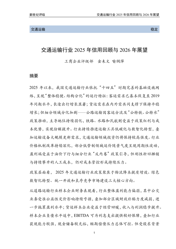 【新世纪评级】【2025】交通运输行业 2025年信用回顾与 2026年展望-63页