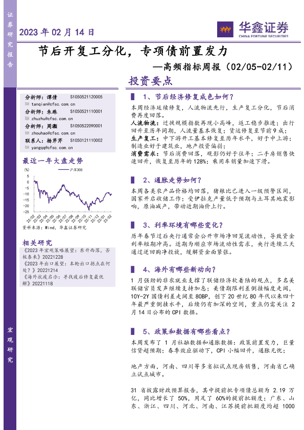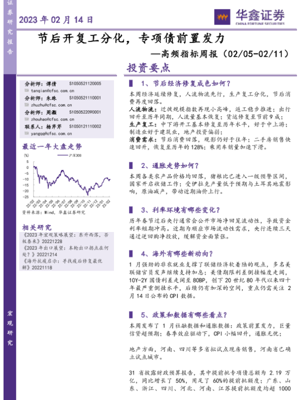 【华鑫证券】【20230214】高频指标周报:节后开复工分化,专项债前置发力-23页