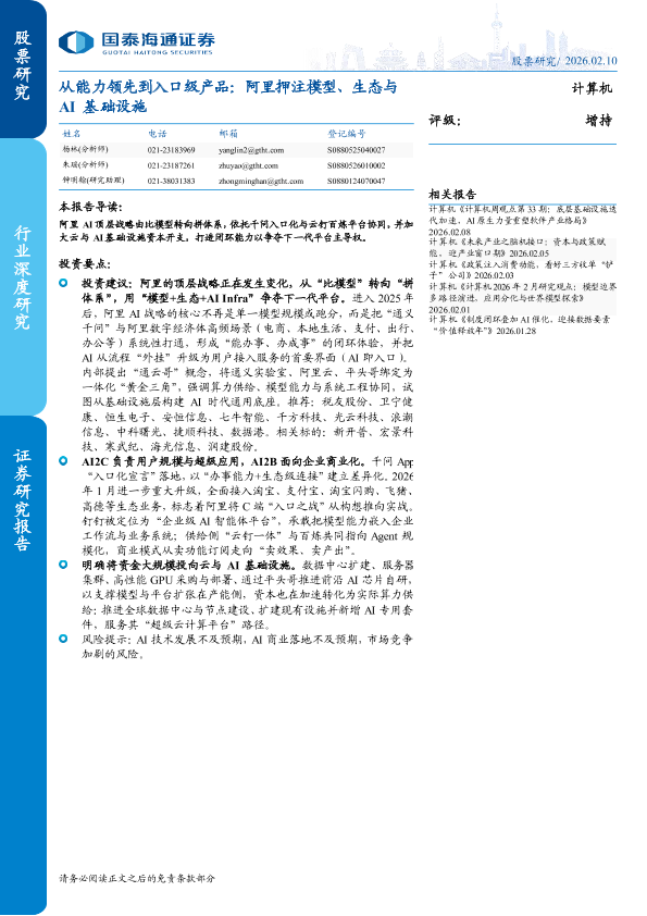 【国泰海光通证券】【202602】从能力领先到入口级产品:阿里押注模型、生态与AI+基础设施-48页
