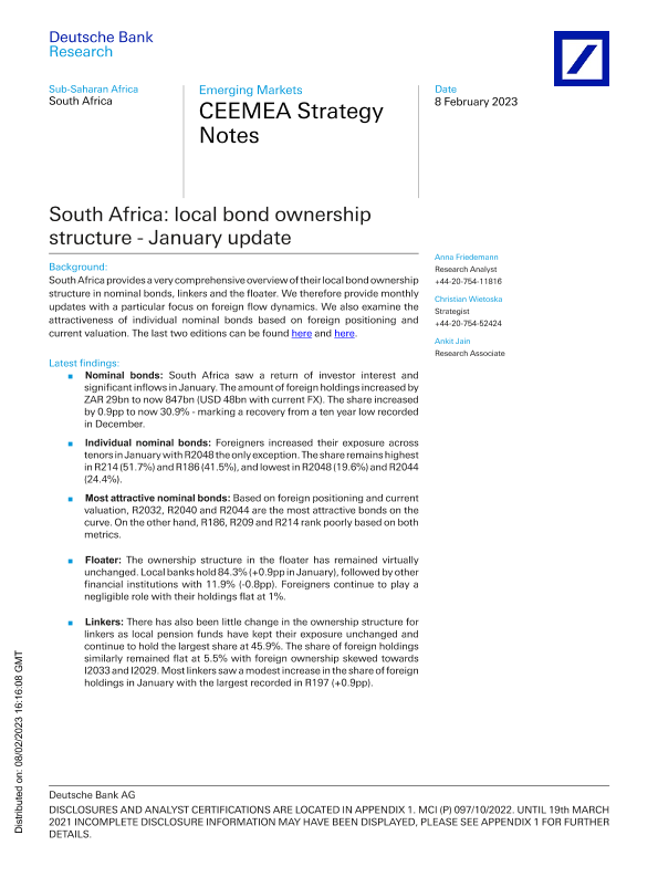 【Deutsche Bank Research】【20230208】南非:本地债券持有结构 - 1月更新-13页