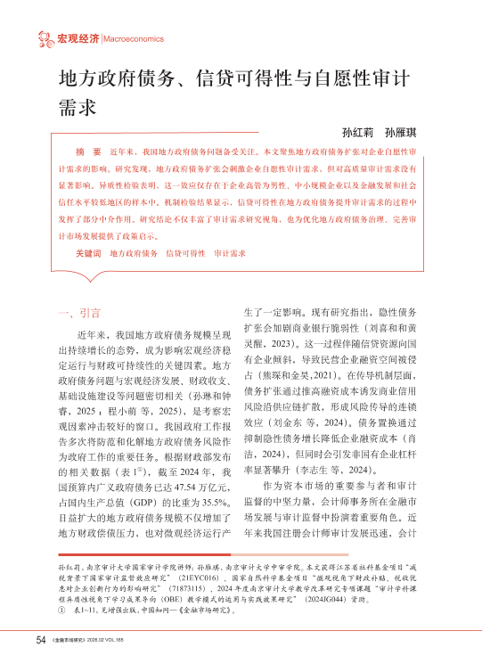 【《金融市场研究》】【202602】地方政府债务、信贷可得性与自愿性审计需求-10页