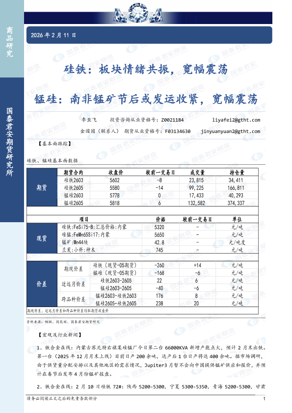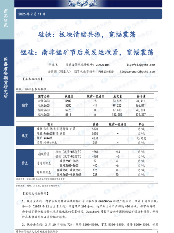 【国泰君安期货】【202602】硅铁:板块情绪共振,宽幅震荡,锰硅:南非锰矿节后或发运收紧,宽幅震荡-3页