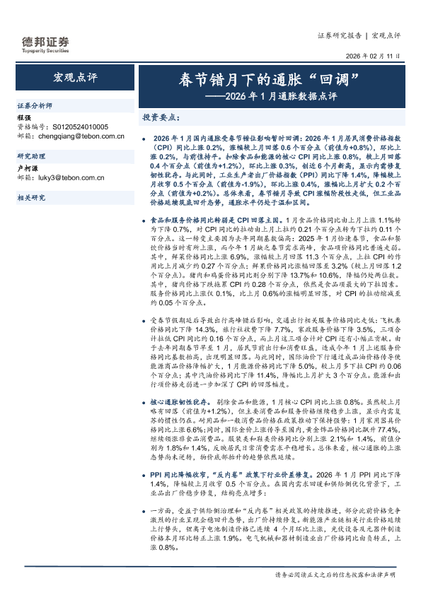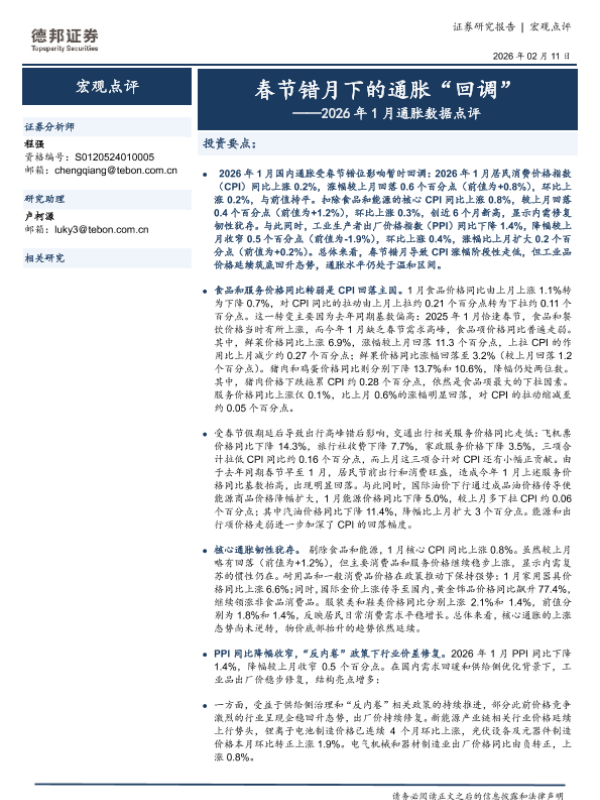 【德邦证券】【202601】2026年1月通胀数据点评_春节错月下的通胀_回调-5页