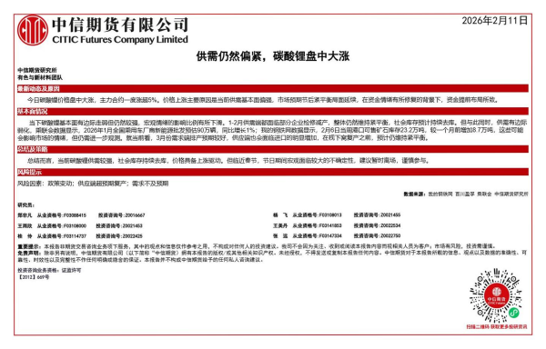 【中信期货】【202602】供需仍然偏紧,碳酸锂盘中大涨-1页