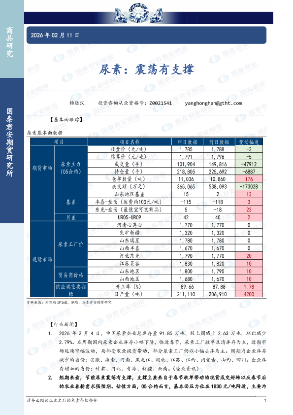 【国泰君安期货】【202602】尿素:震荡有支撑-3页
