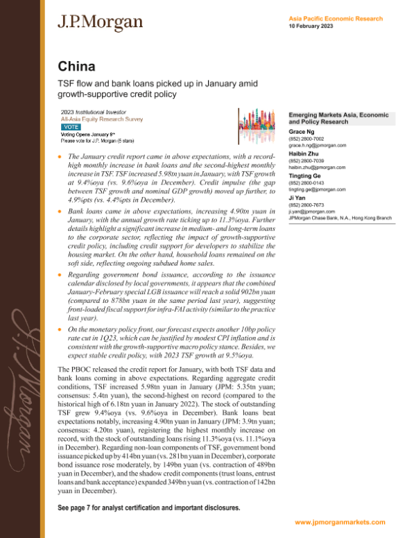 【J.P. Morgan】【20230210】TSF flow and bank loans picked up in January amid growth-supportive credit policy-10页