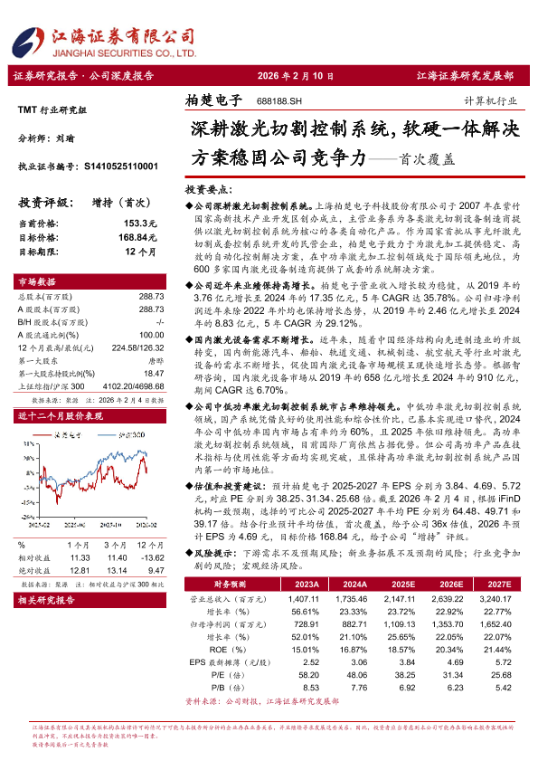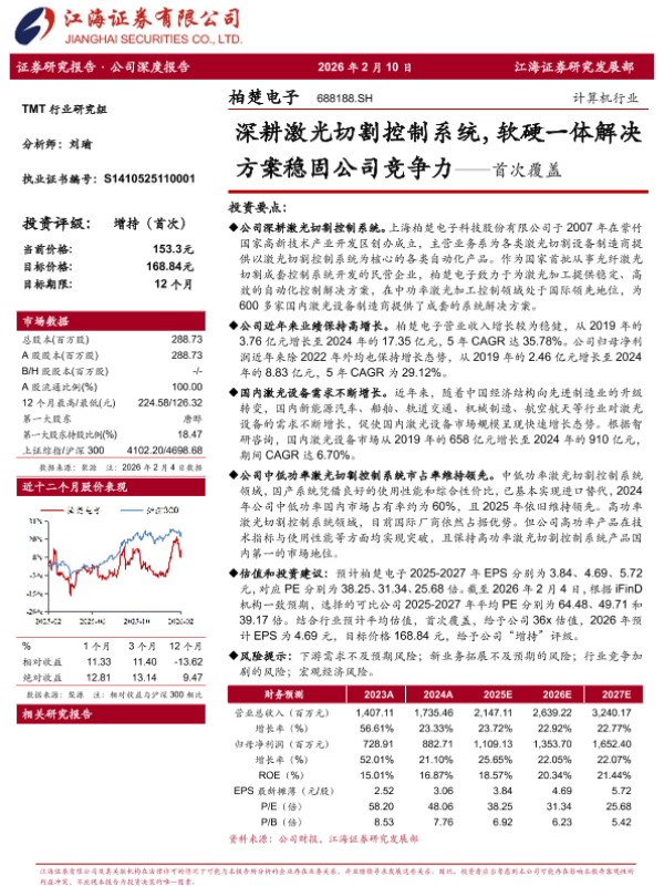 【江海证券】【202602】柏楚电子 688188.SH 计算机行业 深耕激光切割控制系统,软硬一体解决方案稳固公司竞争力——首次覆盖-28页