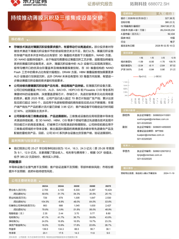 【东方证券】【202602】拓荆科技动态跟踪——持续推动薄膜沉积及三维集成设备突破-5页