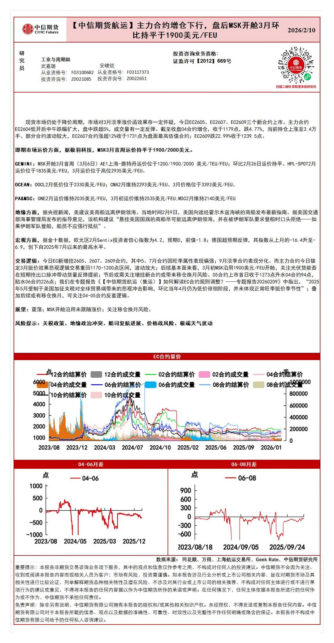 【中信期货】【202602】主力合约增仓下行,盘后MSK开舱3月环比持平于1900美元/FEU-1页