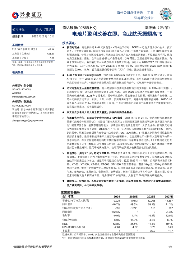 【兴业证券】【202602】电池片盈利改善在即_商业航天振翅高飞-4页