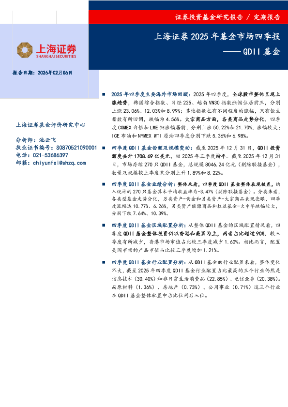 基金业绩分析 行业配置 区域配置 海外市场回顾 QDII基金