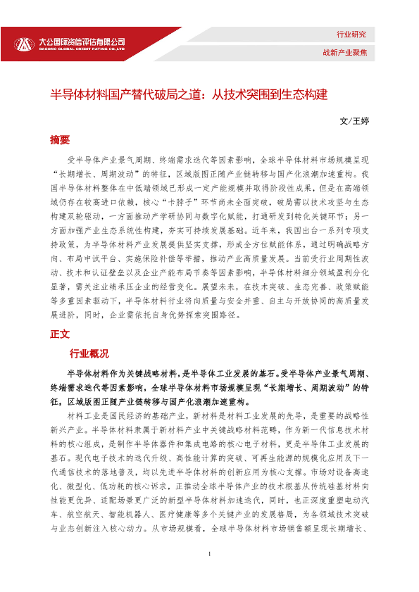 【大公国际】【2026】半导体材料国产替代破局之道:从技术突围到生态构建-11页
