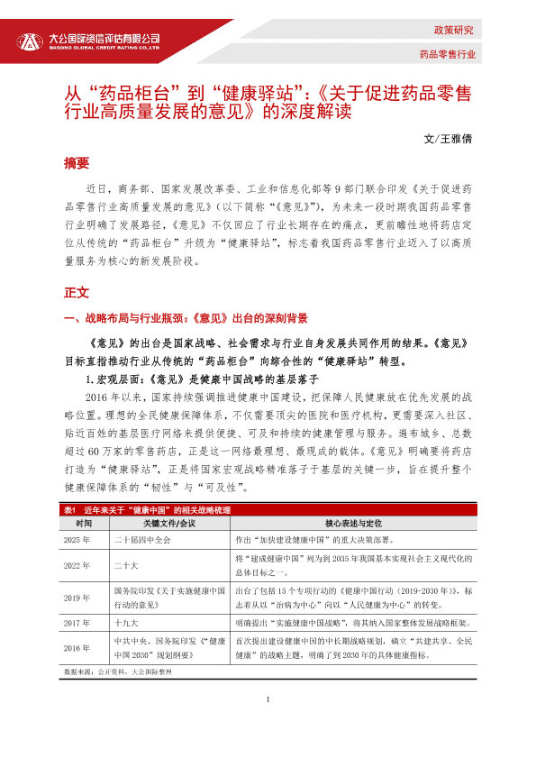 【大公国际】【2026】从“药品柜台”到“健康驿站”:《关于促进药品零售行业高质量发展的意见》的深度解读-5页