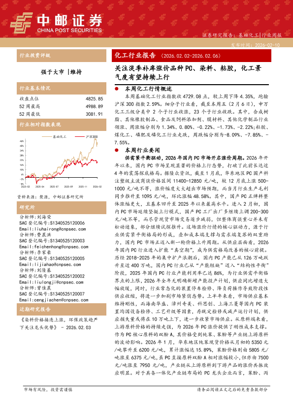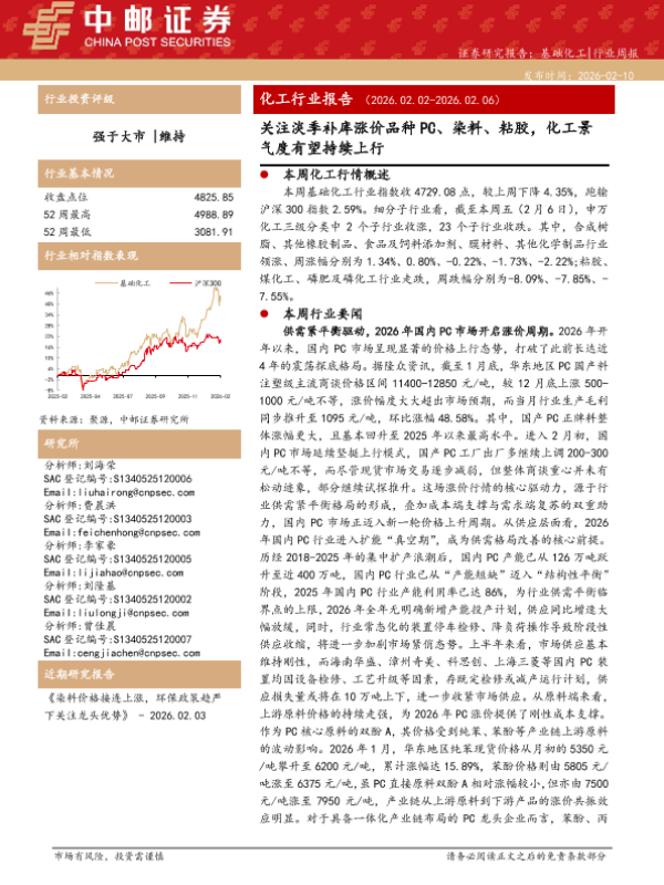 【中邮证券】【202602】基础化工\|行业周报-40页