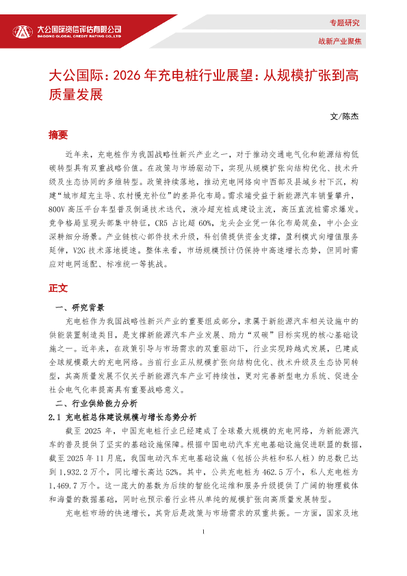 【大公国际】【2025】2026年充电桩行业展望:从规模扩张到高质量发展-14页