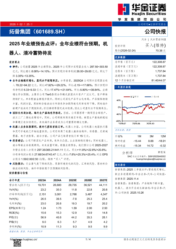 【华金证券】【2025】2025年业绩预告点评:全年业绩符合预期,机器人、液冷蓄势待发-4页
